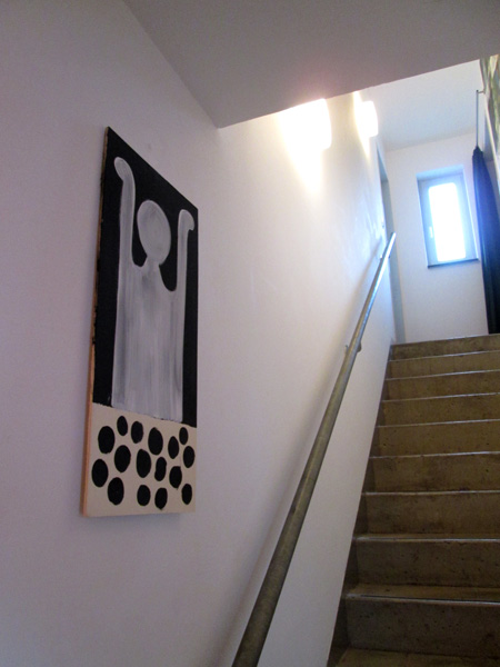 "to be continued | ...", Wandfarbe auf Sperrholz, 2016 (Flur/Aufgang)